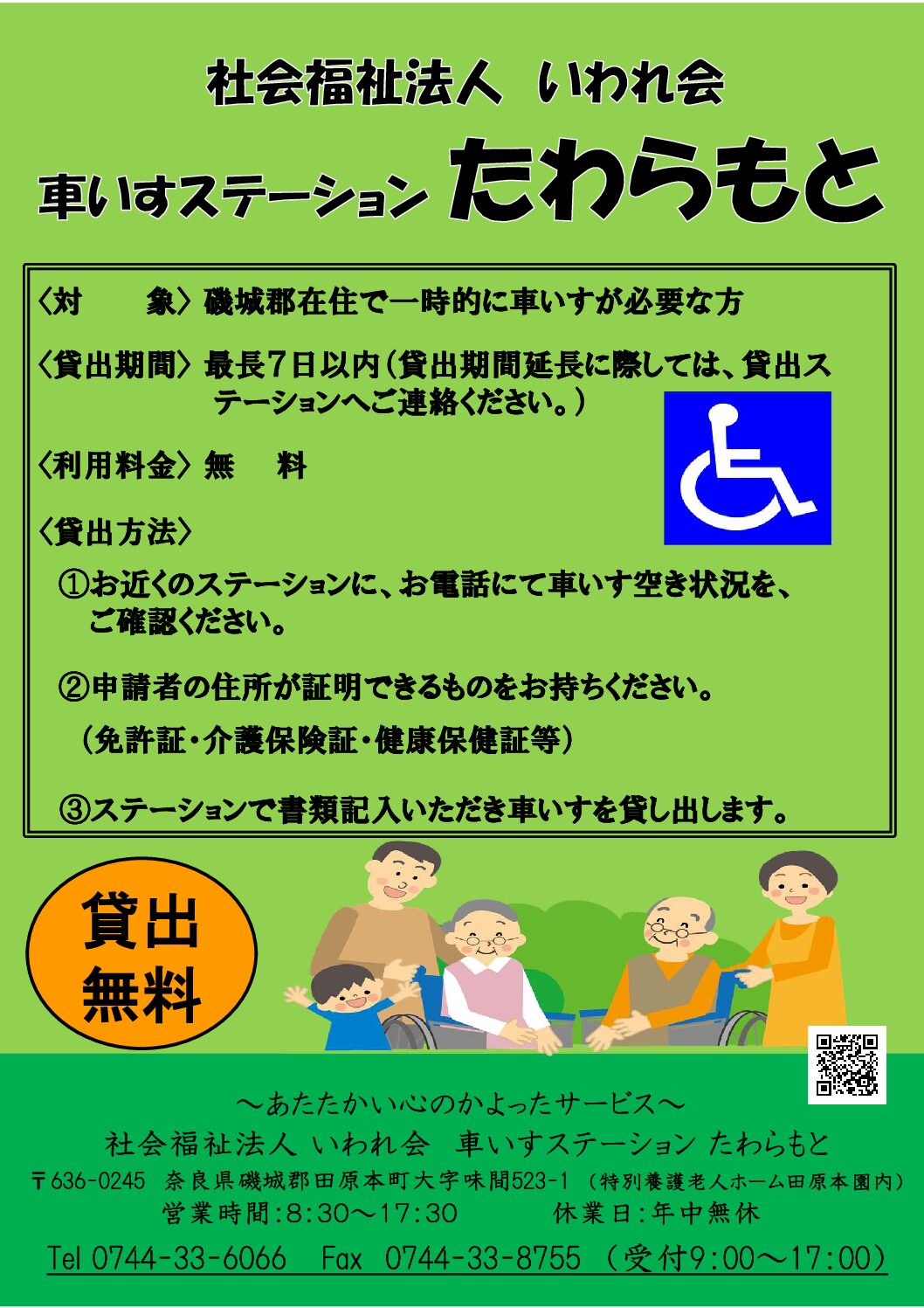 - 「車椅子ステーション たわらもと」のお知らせです。