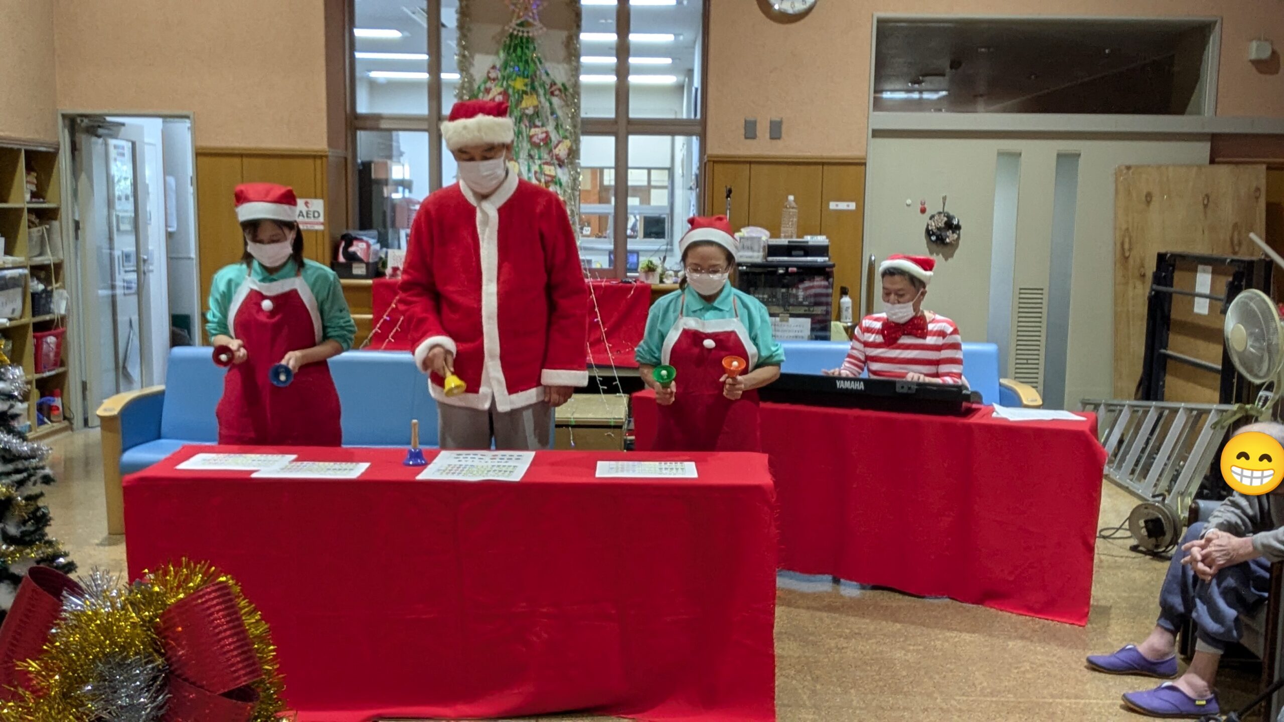 職員によるハンドベルとキーボードの演奏とみなんさんの歌のコラボレーション♬