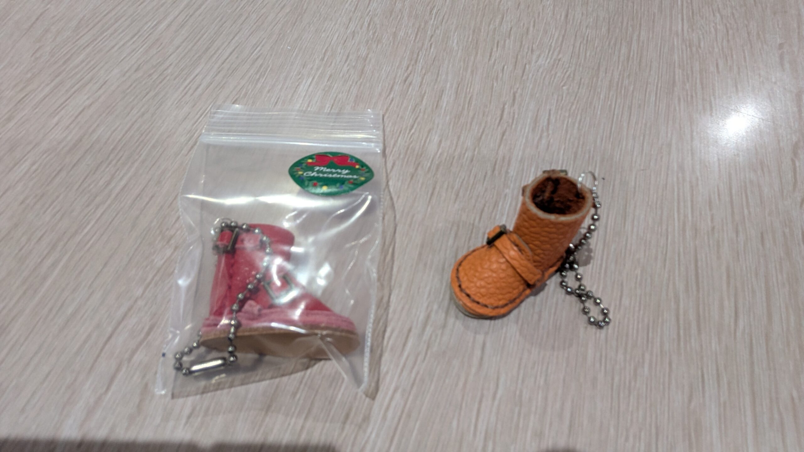 実は職員さんの手作りのブーツのキーホルダーでした!