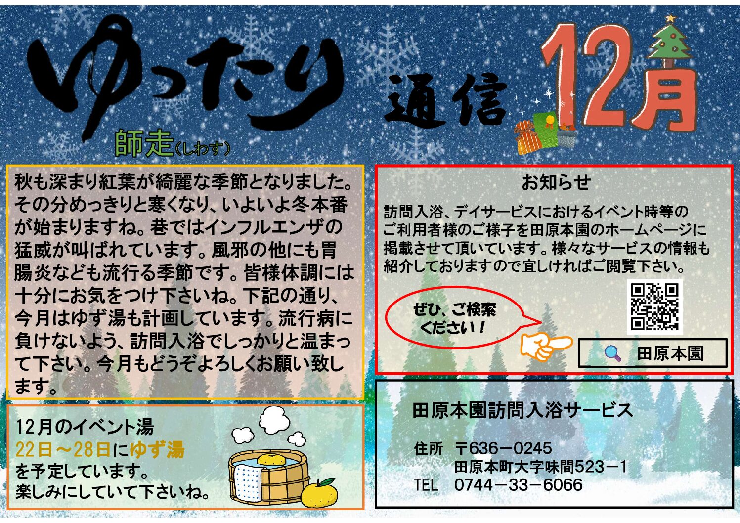 11月 30 2025 令和7年12月 ぬくもりの郷デイサービスセンター広報誌「ぬくもり通信12月号」です ❸トップページ(ぬくもりの郷), ❹ケアマネージャーの方へ(ぬくもりの郷), ぬくもりの郷_デイサービス