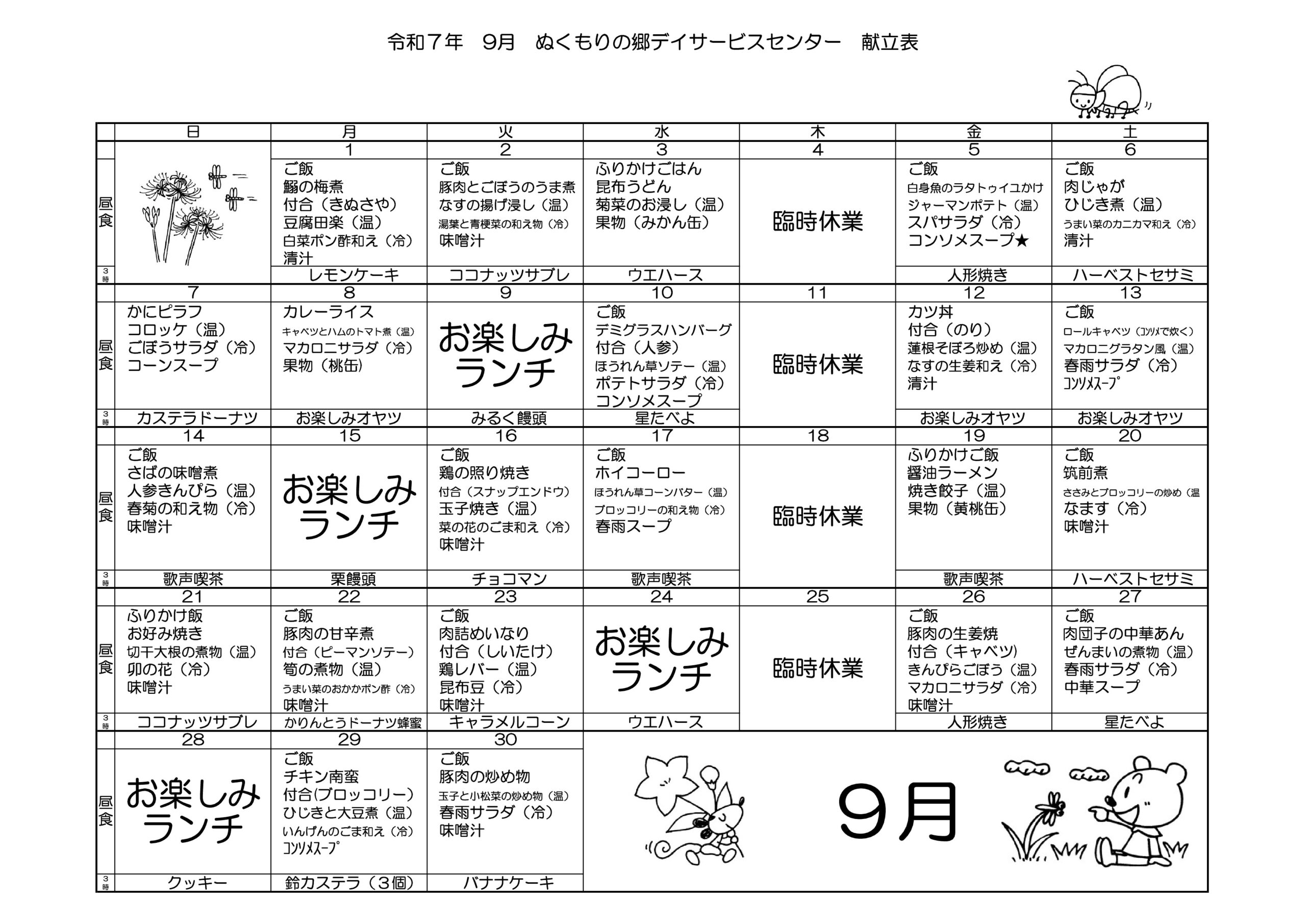 - 令和7年9月 ぬくもりの郷デイサービスセンター広報誌「ぬくもり通信9月号」です
